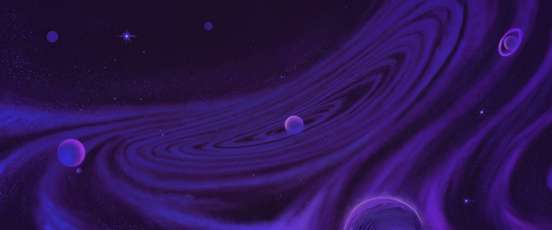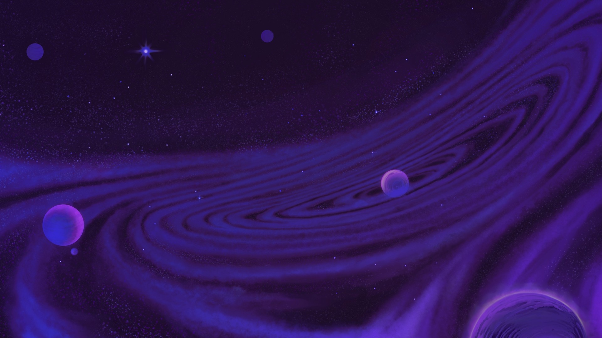 Develop a cosmic background utilizing a "Retro-inspired" palette of deep violets and blues. The environment needed to provide visual interest without distracting from the productivity tasks.