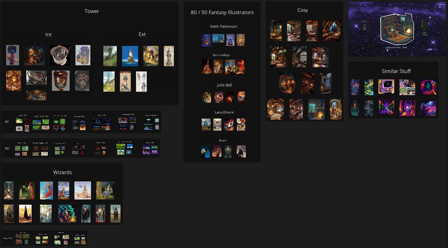 Tasked with the complete visual development for Pomodoro Wizard, I designed all environment assets and character concepts for this gamified productivity app. The project centers on Pomodor, a wizard in a cosmic tower, providing a whimsical companion for user focus. My work involved translating the client's vision into a cohesive asset library that supports the app's unique blend of time management, procedural music, and immersive ASMR atmospheres.